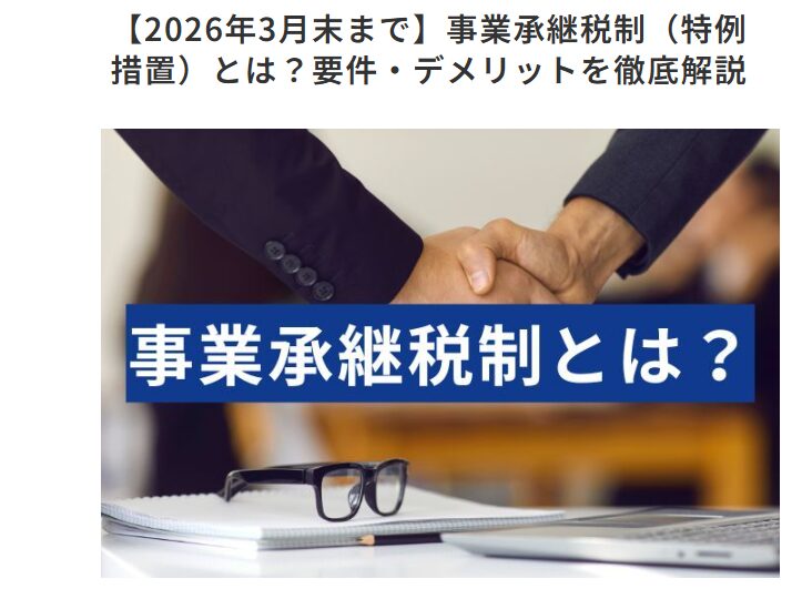 今回は、『【2026年3月末まで】事業承継税制(特例措置)とは?要件・デメリットを徹底解説』という記事で、以下の点についてワンポイントアドバイスをさせていただきました。